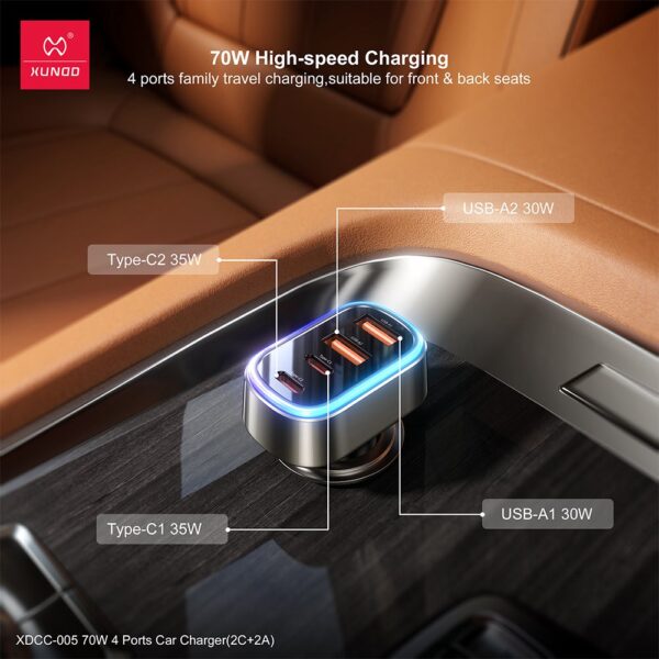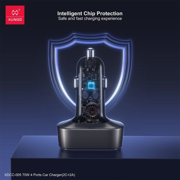 XUNDD Fast 70W 4 ports Car Charger- Black